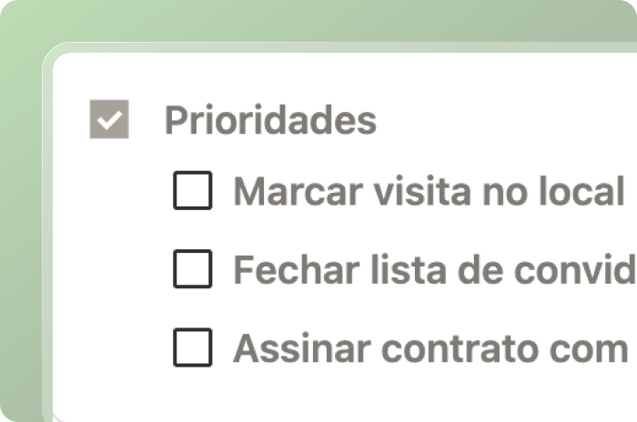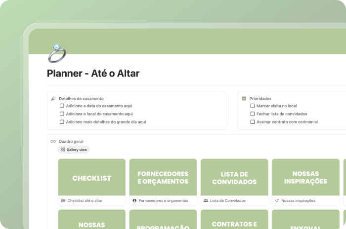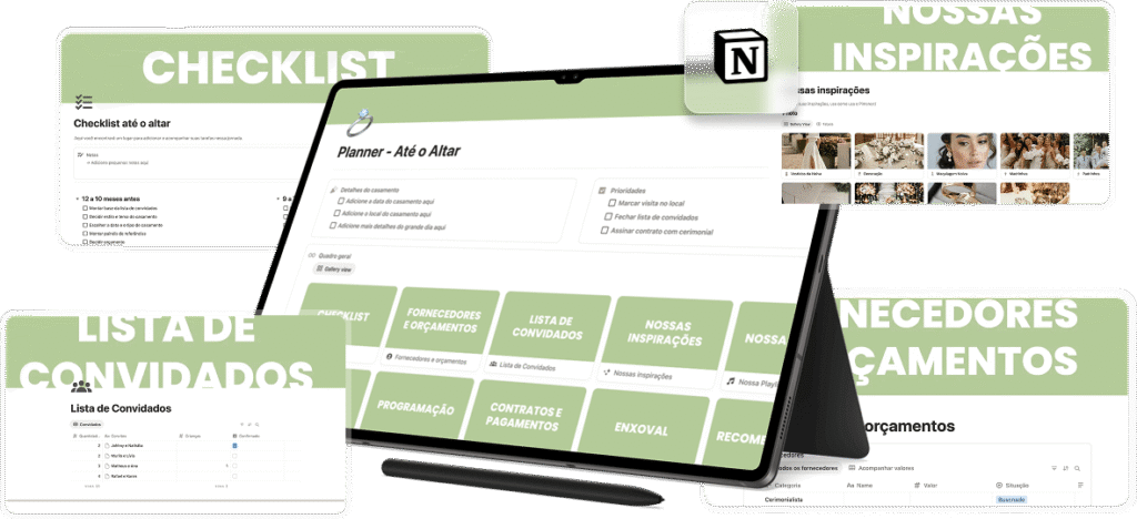 Um espaço para colocar cada detalhe em um só lugar lugar, organizar as etapas e tornar o seu noivado uma fase leve, incrível e prazerosa!